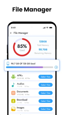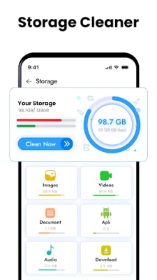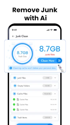 Built with a smart AI cleaner, the app identifies temporary files, large files, duplicate files, and unused media so you can free up storage in just one tap. Keep your phone clean, organized, and fast without complicated steps.