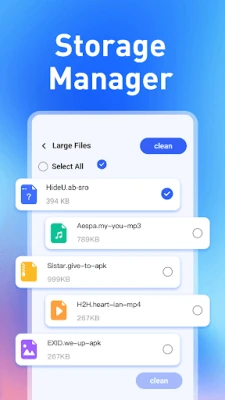 Our smart phone cleaner engine scans your device for useless cache files, temporary data, and obsolete APKs. Clean out junk with one tap to free up valuable storage space.