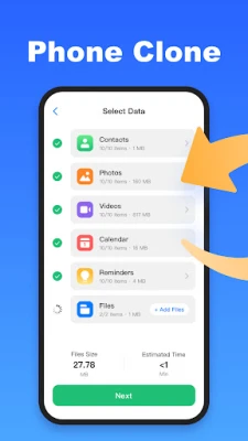Smart Switch Phone Clone app allows you to seamlessly transfer your data including contacts, photos, videos, files, and more data between devices. Data Transfer App is a powerful phone cloning tool that supports seamless data migration between Android and iOS devices. By connecting via Wi-Fi or QR code, users can quickly and securely transfer contacts, photos, videos, calendars, reminders, and other documents. Whether you’re upgrading to a new phone or backing up personal data, this app ensures a secure, stable, and reliable data transfer experience.