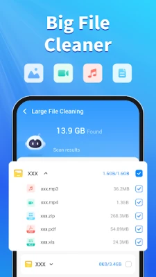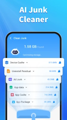 • Smart Scanning Engine: Intelligently identify cache, residual files, temporary data, and redundant APK packages.
