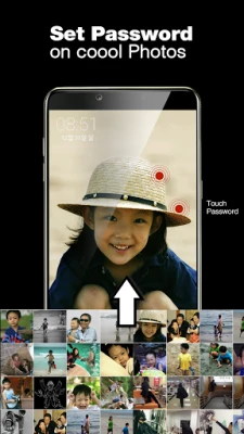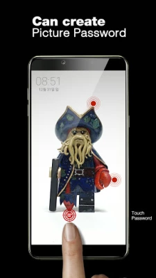 The touch lock screen can simply set a "touch password" with the touch of specific positions on my photo such as eyes, nose, mouth, face, or hand.