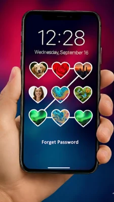 Node Shape Changer: Personalize your grid by choosing different shapes for nodes (Heart, Round, Square, etc.) to match your photo lock screen theme and aesthetic.