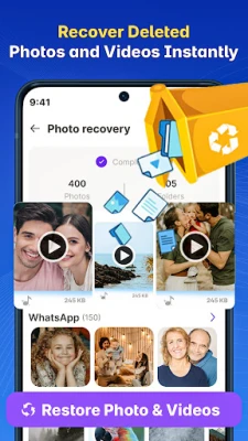 Restore deleted photos, memories, screenshots, and images easily.