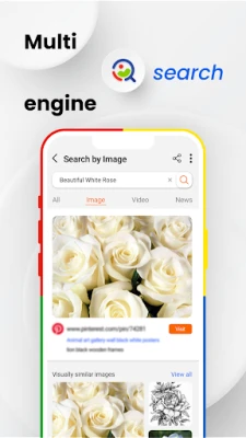 It's a smart image search so you just need to upload an image from your phone gallery, or a photo taken from your camera, once your photo is uploaded, the photo finder starts working and then search by image. Photo Search app will search for related pictures on the internet. You can find photos or images of different sizes, matching images, or similar colors thanks to this smart image search!