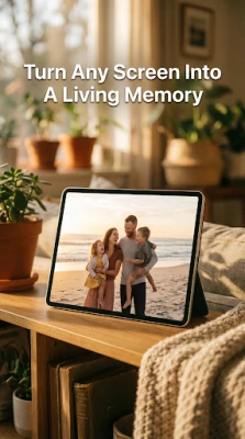 Whether on your bedside table, kitchen counter, living room, or office desk, PicDock creates a calm and stylish photo display experience.