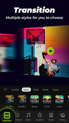 Photo Video Maker - InSlide offers an easy one-click transition feature that frees you from the hassle of selecting transitions manually. With a wide selection of transitions, you can easily optimize your video's visual effects.