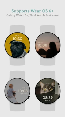 • Built with Watch Face Format. • Supports watches running on Wear OS 6 or higher. • Display single or multiple photos on your watch face. • A configurable complication space. • 5 clock positions. • 50+ handpicked color palettes. • Option to adjust photo dimness.