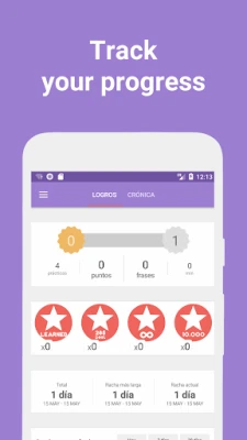 Our unique algorithm improves the learning process, using proven methods from the field of memory research. Phrases adapts individually to you, selectively repeats the material with which you had problems. Completing lessons and playing games, you will gain experience, move to higher levels and collect rewards.