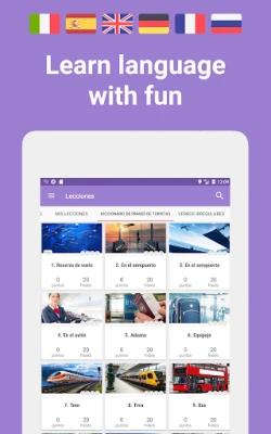 - 8 unique exercises, each teaches the specific skill of the language being studied.