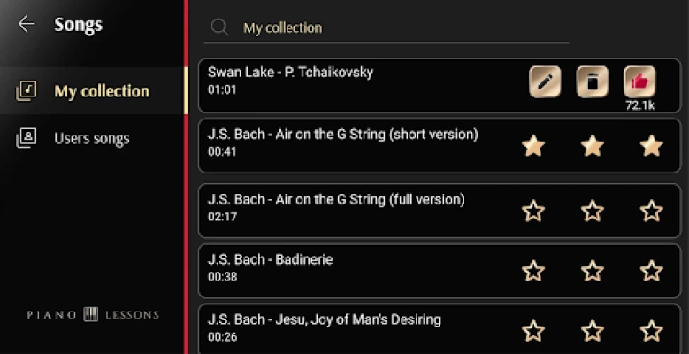 Are you satisfied with how you are progressing? Upload your sung tracks into our Cloud Playlist. All users can hear and provide ratings to your tracks, creating a home for piano lovers all getting better together.