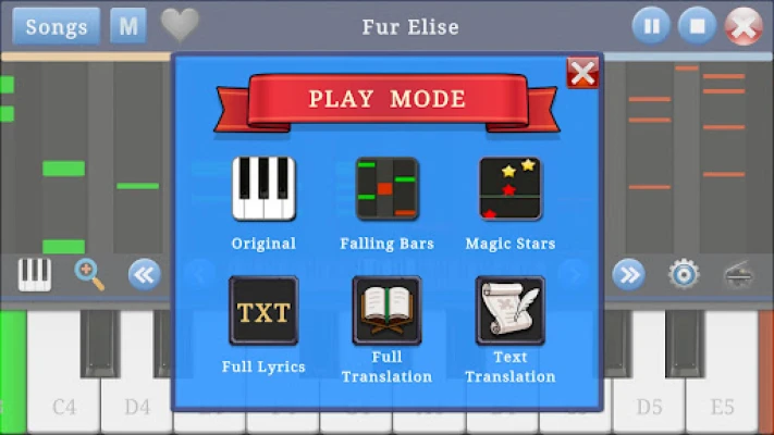 Features: * Simple piano with 88 keys piano keyboard. * Play music and learn popular and classic piano songs. * Magic stars piano mode and lyrics mode. * Learn piano music and songs with multi languages lyrics translation. * Change the sounds types with 8 piano keyboards and musical instruments, such as Acoustic Piano, Bright Piano, Electric Piano, Nylon Guitar, Steel Guitar, Electric Guitar, Harmonica, and Trumpet.