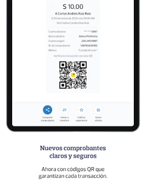 Además, los beneficiarios de tus transacciones podrán recibir vía correo electrónico la confirmación de la transacción y podrás compartir el comprobante de la transacción por cualquier canal de mensajería. Te invitamos a ser nuestro cliente. Queremos darte la mejor experiencia y ser cada vez mejor.