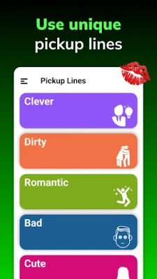 Whether it's a pickup line that's cute and quirky or romantic pickup lines that are timeless and heartfelt, our app ensures you're never at a loss for words.