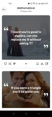 🔹 Vast Collection: Explore a diverse range of pickup lines and flirt messages to match your unique style and personality. From cheesy classics to witty one-liners, there's something for everyone!
