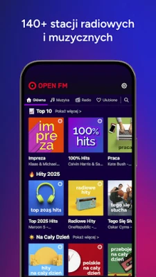 Zakładka Radio: masz pod ręką radio internetowe z twoimi ulubionymi stacjami muzycznymi dzięki Open FM
