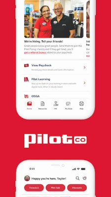 PilotCo gives you: • A clock-in/clock-out feature • Real-time information from leaders • A one-stop-shop to find information • Important company updates • A way to recognize and celebrate team members