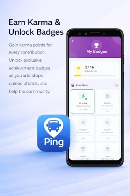 Ping gets better with every user. Add new bus stops, upload photos, and help fellow commuters find their way. Every contribution earns you karma points.