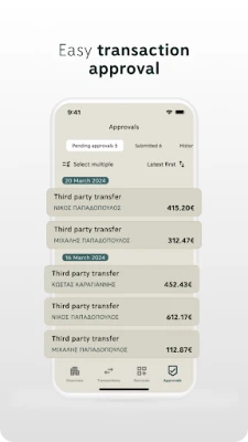- Approval of other users' Piraeus e-banking transactions according to the company’s approval schemes.
