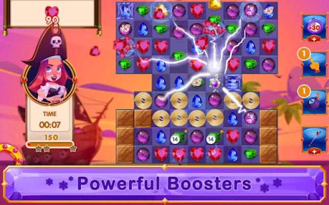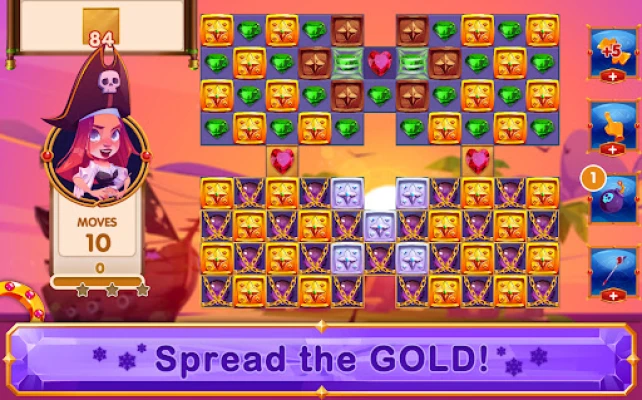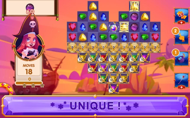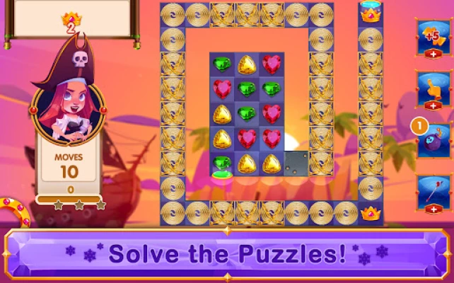 You are playing as a cute but at the same time brave and furious pirate girl sailing in the vast ocean hopping island to island to conquer the islands and collect treasures, gems, diamonds and most importantly lost Crowns!