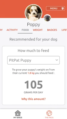 • Control food portions? We got you. Get dynamic and precise food amount recommendations with our own-brand food.