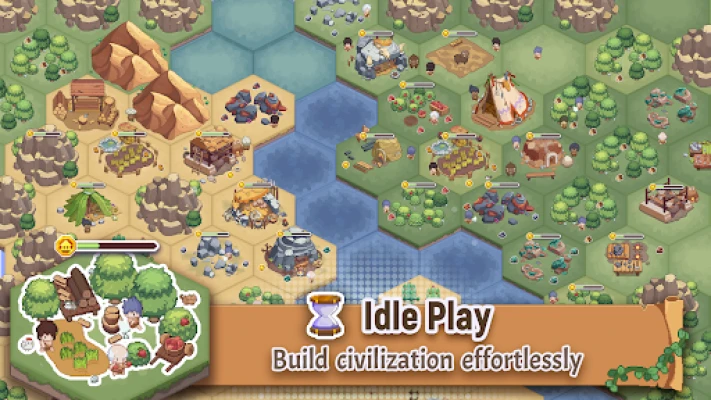 Welcome to 'Pixel Civilization', an idle casual simulation game that takes you on a grand adventure through the epochs of human history! Immerse yourself in a peaceful world focused on growth, development, and innovation.