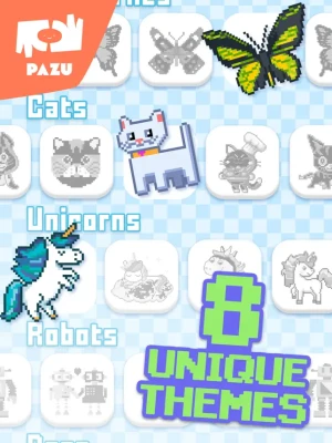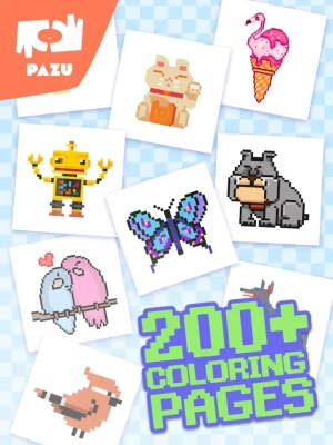 Pixel art coloring for kids offers a wonderful set of pixel art coloring pages for boys and girls 6,7,8,9 and 10 years old. With great pixel artworks, it is designed especially for children, providing an educational and creative experience. Pixel art coloring for kids is brought to you by Pazu Games Ltd, the publisher of popular kids games like Girls Hair Salon, Makeup Girls, Animal Doctor and others, that are trusted by millions of parents worldwide.Pixel art coloring book provides an opportunity for your kids to express their creativity and artistic skills, spark their imagination and enjoy the many colors and designs available.