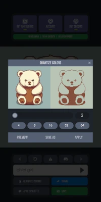 【 POST PROCESSING】 After pixel art is generated, you can resize it, quantize (reduce) colors and apply any built-in palette .