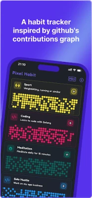 Pixel Habit turns daily discipline into a visual masterpiece. Track habits like GitHub streaks with pixel-perfect grid charts – watch your progress bloom in colorful tiles!