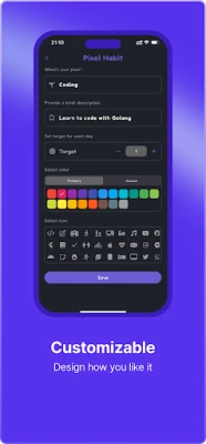 Pixel-Perfect Progress: Customize colors, icons & descriptions to match your vibe.