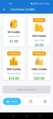Fuel Up with Credits: Grab free credits by watching quick ads, or pick from our awesome, budget-friendly credit packs to suit your style (hello, bonus credits! 🥳).