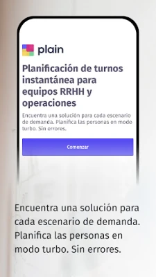 Además, descargando la aplicación, la podrás complementar con las ventajas que ofrece el software de Plain, con la conseguirás una gestión de turnos, Planificación de turnos automático o con IA y cuadrantes de trabajo de tus empleados en menos tiempo sin errores.