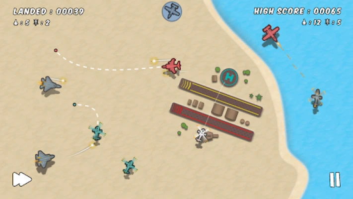 You are an Air Traffic Controller (ATC) or a Flight Control Manager in this simple but addictive path drawing game. While in the air traffic tower, your task is to land safely all the upcoming planes and helicopters and avoid collisions. But flying or landing planes is not the only problem! A lot of unexpected challenges and adventures are waiting for you as an ATC at your airport! Get an adrenaline rush while avoiding dangerous collisions, fly in blazing storms and tornadoes, get ready for air combat, attack enemy fighters and even shoot aliens during an alien invasion!