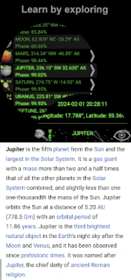 You can learn to spot and recognize the planets, constellations and stars. Just click the academy hat and start to play and learn. If you want to master the night sky, this is the way!