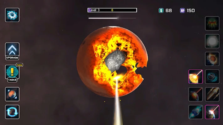 Your mission is very simple - to choose one of the solar system planets and to destroy it in various ways. Put bombs on the surface then detonate all of them. Launch as many rockets and missiles to any location on the planet Earth. Use laser fragments and get through lava right to the core of the planet. And finally, what if entire planets have tremendous impact? You can try it yourself, choose a big planet like Mars or Mercury and throw it right to the Earth, or any other planet in the solar system. Observe colossal planets smashed in the solar system with gorgeous realistic visual and audio effects. After destruction planets will have a realistic asteroid belt formed from the planets part. Dive into your own universe sandbox, pocket galaxy, smash solar system planets with all available weapons.