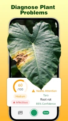 Snap a photo of an unhealthy plant to check possible diseases or stress symptoms and receive practical treatment and recovery suggestions.