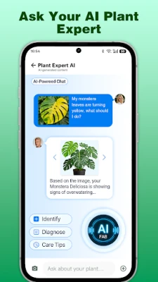 Ask follow-up questions about watering, light, symptoms, care routines, and next steps. Get helpful AI guidance based on your plant and situation.