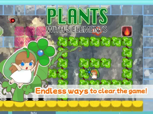 Dive into a world of nostalgia and innovation with "Plants with 5 Elements," a pixel art action puzzle game that takes you on an enchanting journey through unknown realms. Harness the power of magical flora to combat mysterious mechanized creatures in this Showa-era retro visual feast that's fun for all ages, from kids to adults who love action and puzzle games.