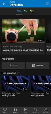 - Accesso rapido ai video e audio più recenti di tutte le categorie: informazione, sport, documentaristica, cultura, musica, intrattenimento, serie tv e film, bambini e giovani