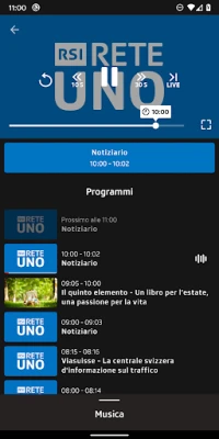 - Riascolto della diretta radiofonica: scorri indietro la timeline fino a 6 ore