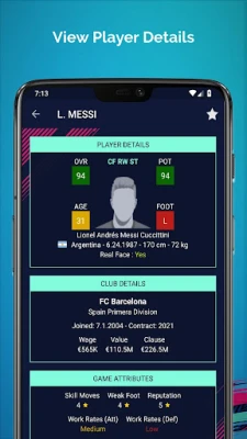In Player Details page you can see very detailed data like Player Photo, Player Full Name, Preferred Positions, Preferred Foot, Day Of Birth, Height, Weight, Contract End Date, Wage, Value, Release Clause, Specialties, Traits, Weak Foot, Skill Moves, Work Rates and Player Ratings Per Positions.