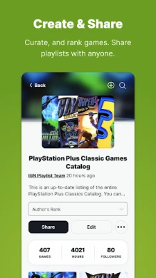 Beat your backlog with IGN Playlist — Track and manage all of your video games, decide what to play next, and discover new games from list creators. Create, share, remix and follow game lists from friends.