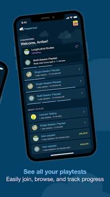 Login into your PlaytestCloud account and browse through all available playtests, surveys and other research, joining and tracking your time on each one easily.