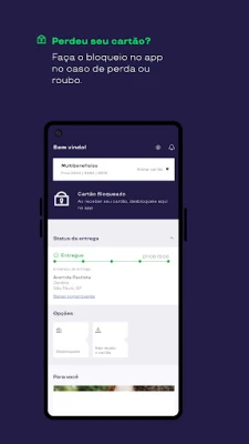 Aqui, você também pode recuperar ou trocar as senhas de seu cartão, bloquear em caso de perda ou roubo ou fazer o desbloqueio de novos cartões. É mais agilidade para você aproveitar a vida com o que realmente importa!