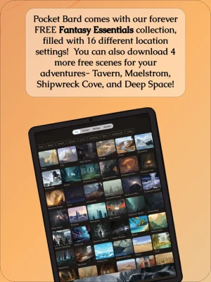 Pocket Bard is a fully immersive audio experience for your tabletop RPG game session. With just a tap, change your entire soundscape to match the tone of your session - from moment to moment, alter the intensity of the music and sound effects to pair perfectly with your gameplay.