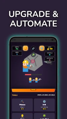💎 Upgrade Everything: Evolve from a rusty pickaxe to a laser drill.