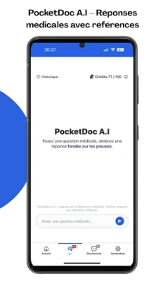 Posez vos questions médicales en toute confiance : PocketDoc A.I vous répond instantanément en s’appuyant sur la littérature scientifique, en citant clairement les références (PubMed, recommandations…).