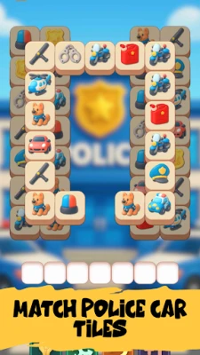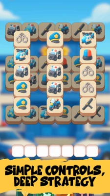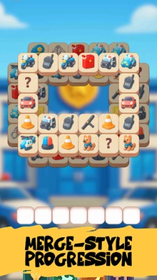 This game combines the satisfaction of merging, the strategy of Mahjong-style puzzles, and the fun theme of police racing and car collection.