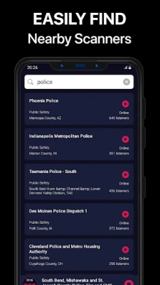 Feature Police Scanner: - You can find stations located in which state. - Reach live radios. You can also see listener counts for each station. - Show feeds near your location - Favorites list