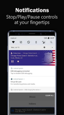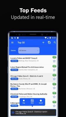 Police Scanner Online / Offline indicators makes it easy to tell if the audio feed is currently Online. Steam your favorites police feeds in the background and pause/play at any time through your phones notifications. Search for your desired police station radio by using Search, Top 50, Favorites or Navigate through Country / State / County location near you.