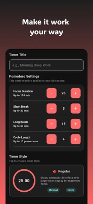 ⚙️ Customizable - Adjust session lengths to fit your needs